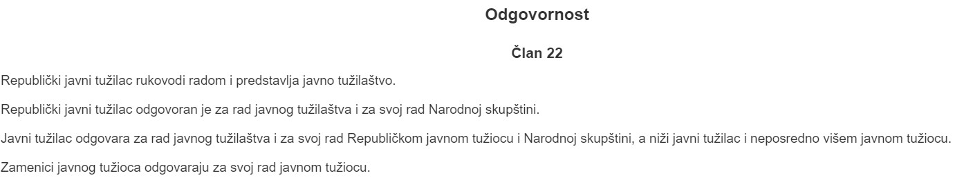 “Po Ustavu, javne tužioce, na predlog Vlade bira Narodna skupština. Državno veće tužilaca ima skromnu, tehničku ulogu, da sastavi listu kandidata za javne tužioce. Da je izbor javnih tužilaca pod senkom politike, konstatovala je i Vlada Republike Srbije u svom dokumentu, Akcionom planu za poglavlje 23”, objašnjava za Istinomer Goran Ilić, član Državnog veća tužilaca.